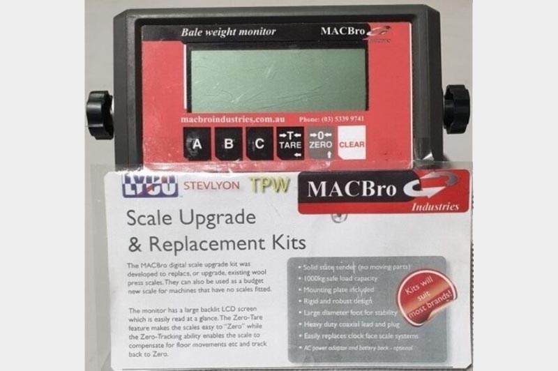 The Macbro digital scale upgrade kit fits most wool presses, simple, accurate and with no moving parts, the kit is a must for all wool press’s.
